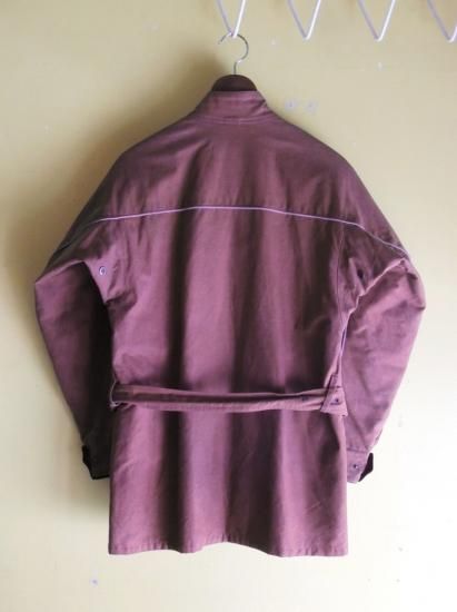 襟はストラップベルトのついたスタンドカラー。