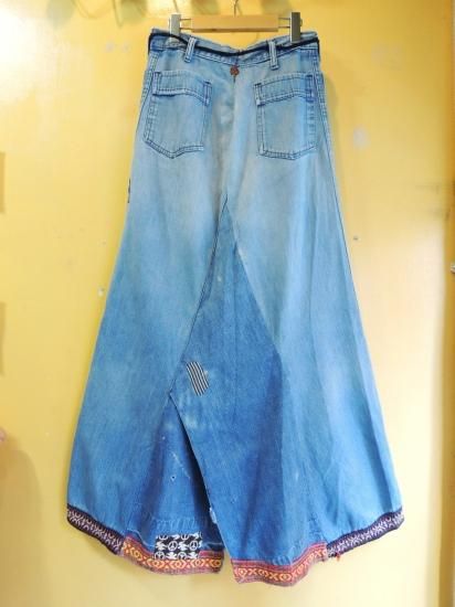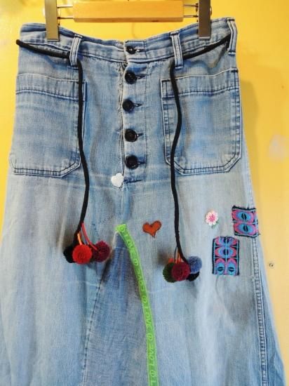 〜1970's handmade DENIM SKIRT with PATCHes and TRIMs ]