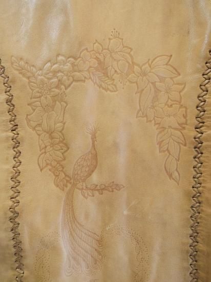 背中には孔雀の型押しが