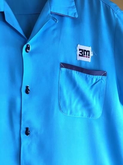 1960's sax-blue rayon BOWLING shirts ]