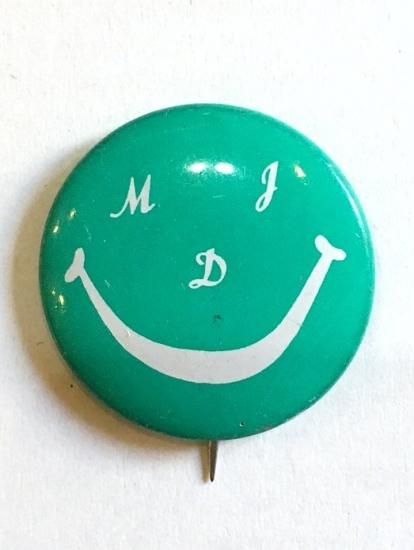 1980's "M J D" smiley face pinback button