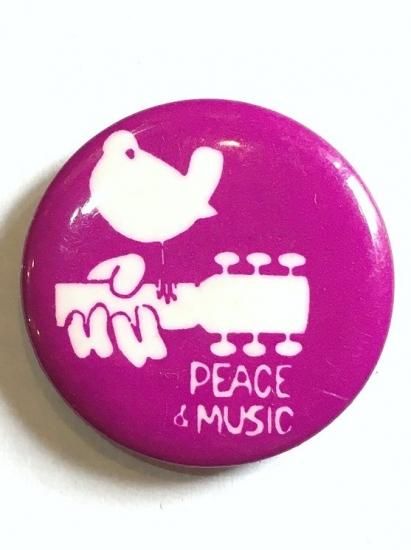 1970's "WOODSTOCK / PEACE & MUSIC" pinback button