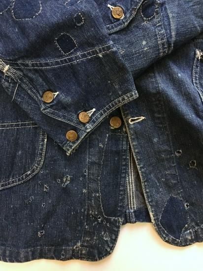 程度は、何かの薬品?酸?的なものによる細かなダメージがあったので、40年代のデニム生地でハンドリペアが施されています。