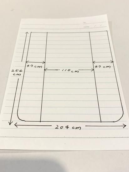 両サイド約470mmずつ柄合わせをした同生地の切り替え仕様になっています。