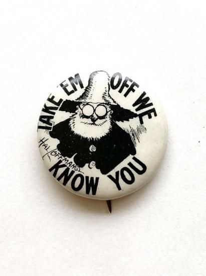 〜1910's "TAKE'EM OFF WE KNOW YOU" by HASSAN CIGARETTES pinback button