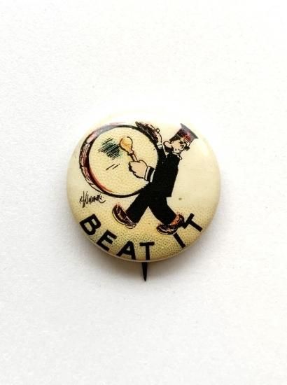 〜1910's "BEAT IT" by HASSAN CIGARETTES pinback button color-version