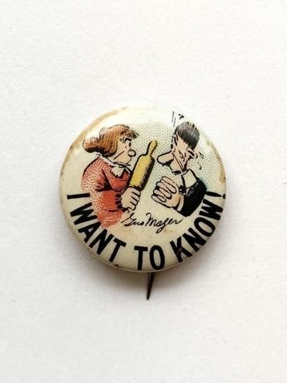 〜1910's "I WANT TO KNOW!" by HASSAN CIGARETTES pinback button