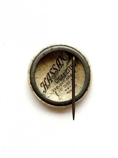 〜1910's "THE POULTRY OF MOTION" by HASSAN CIGARETTES pinback button