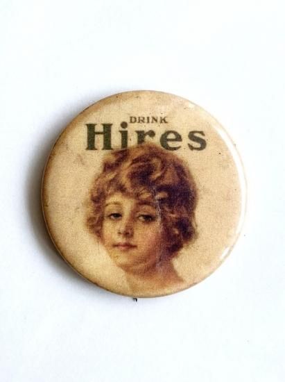 1950's "DRINK Hires" pinback button