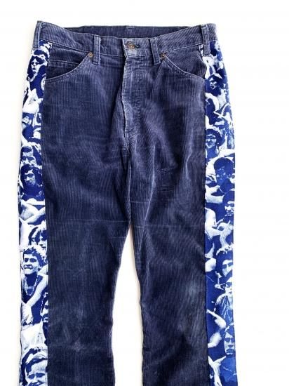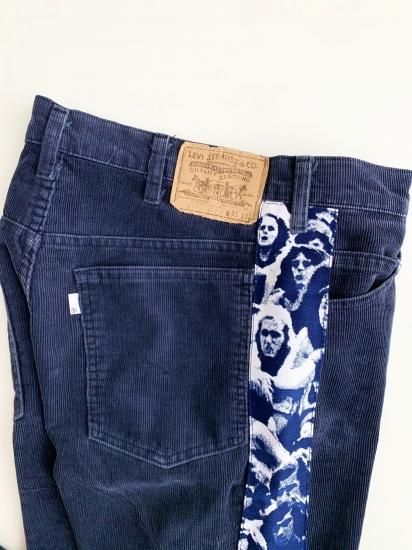 1980's Levi's 517 Navy corduroy with deadstock "WOODSTOCK" fabric