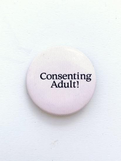 1980's "Consenting Adult! " pinback button