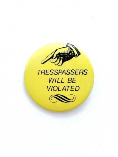 1980's "TRESSPASSERS WILL BE VIOLATED" pinback button