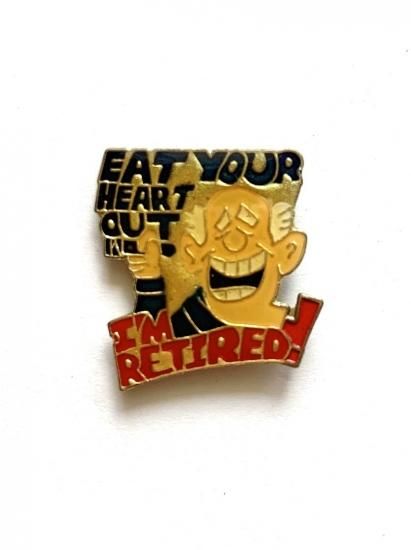 1980's "EAT YOUR HEART OUT / I'M RETIRED" PINs deadstock