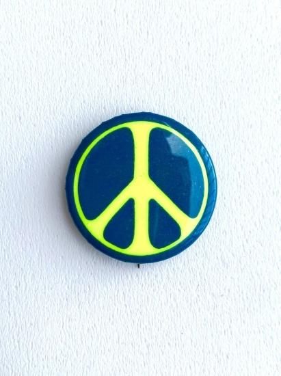 1970's "PEACE-SIGN" yellow pinback button