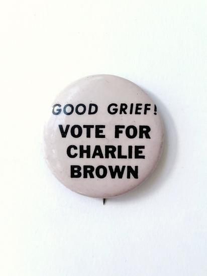 1970's "GOOD GRIEF! VOTE FOR CHARLIE BROWN" pinback button