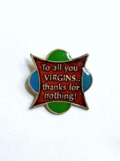 1988 "To all you VIRGINS.. thanks for nothing!" PINs DEADSTOCK