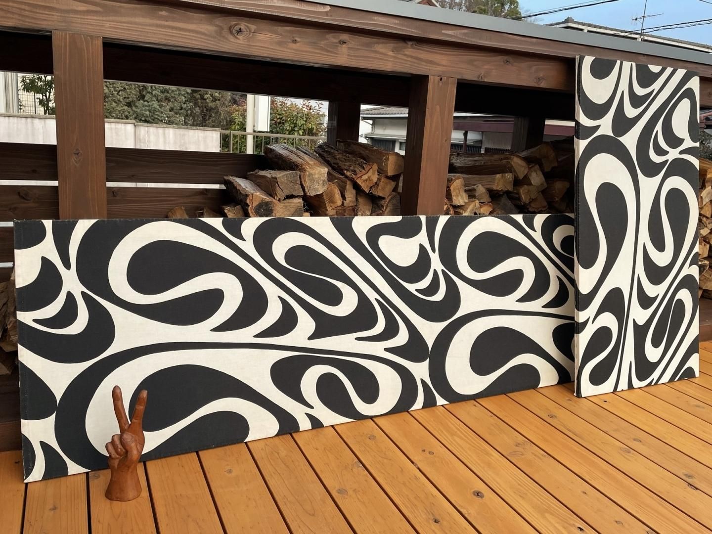 サイズは実寸で、520mm × 955mm(比較対象として高さ22cmの木彫りのピースを置いてみました)