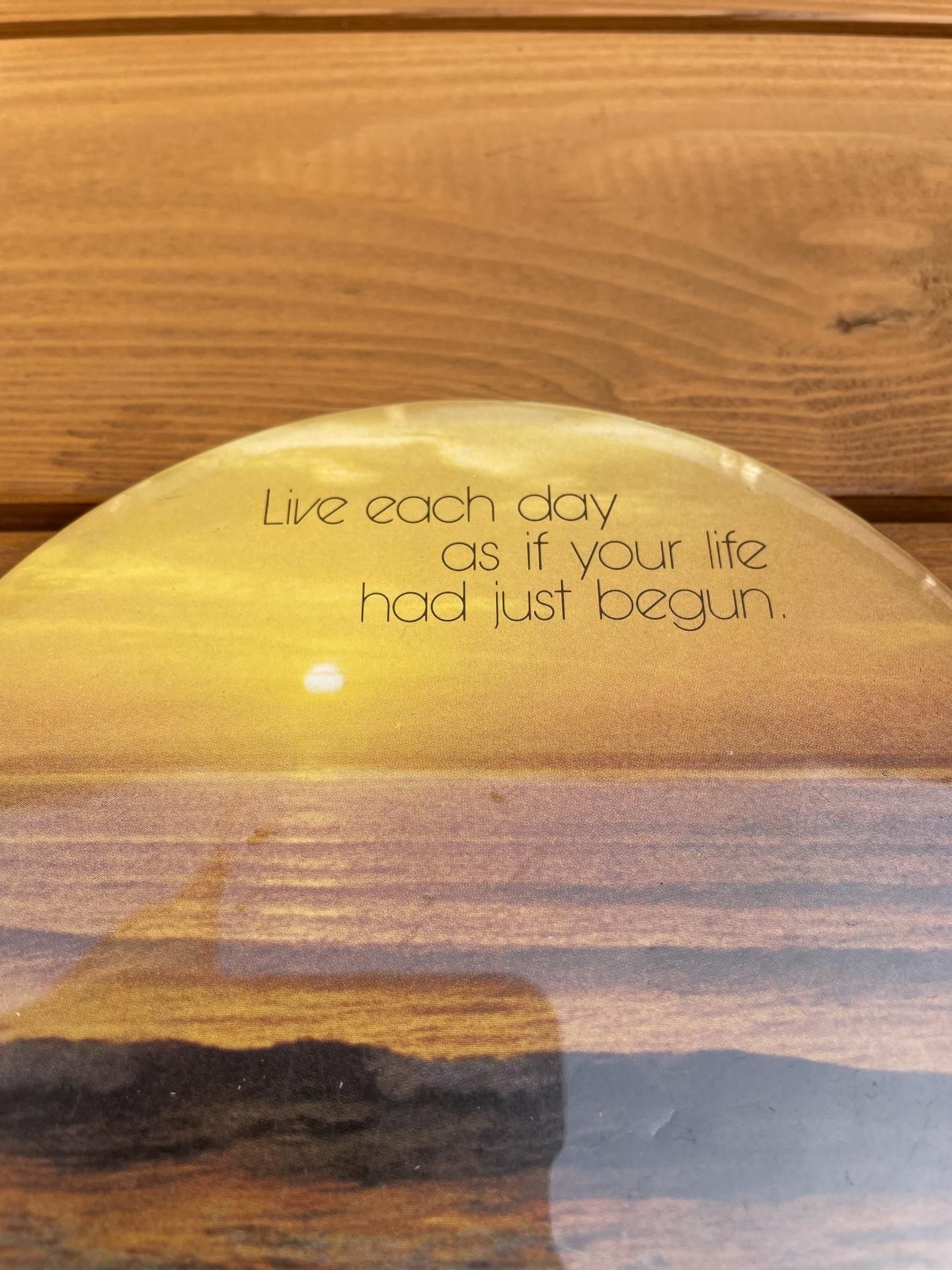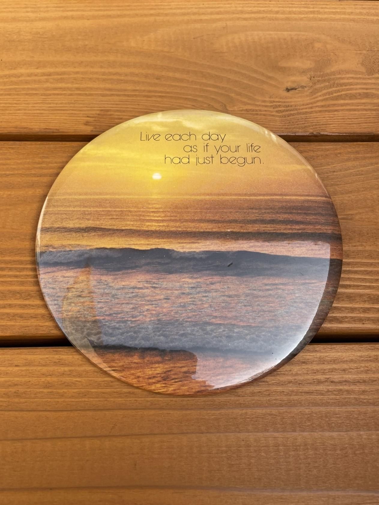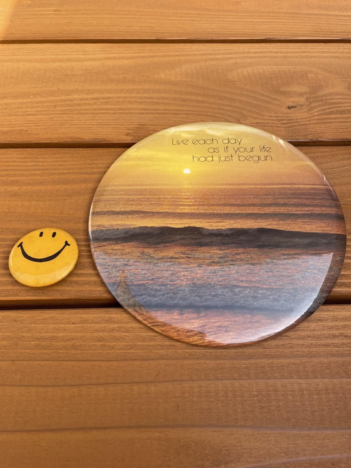1970's "Live each day as if your life had just begun" HUGE-SIZE PINBACK BUTTON