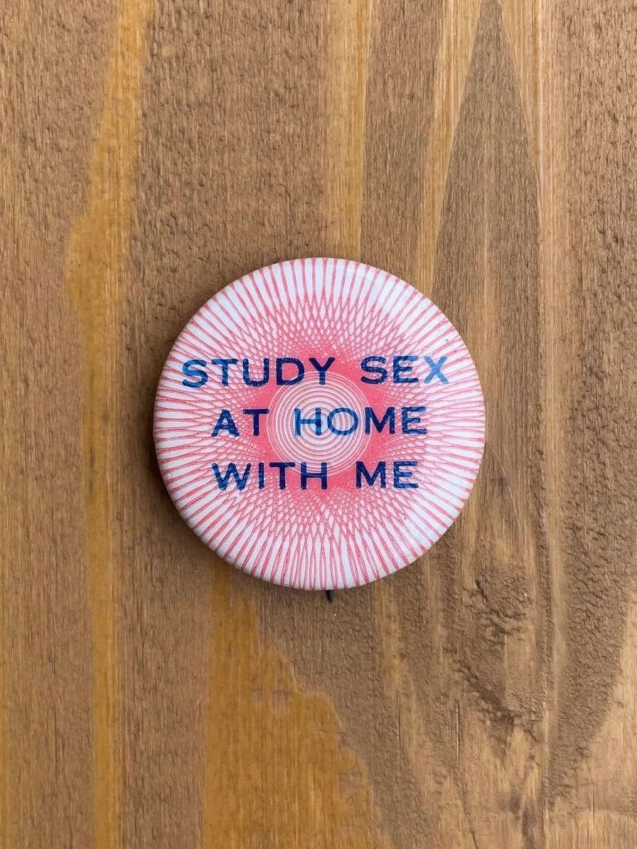 1970's "STUDY SEX AT HOME WITH ME" PINBACK BUTTON