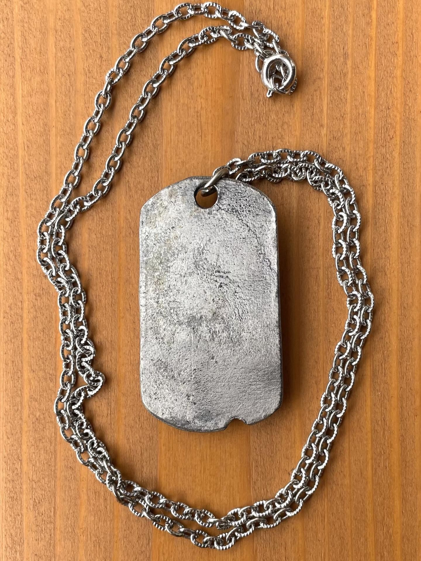 『DOG-TAG ドッグタグ』 と呼ばれる、軍隊の兵士の個人識別用に首から下げている認識票(にんしきひょう)