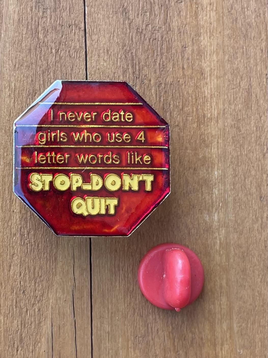 1980's "I never date girls...." PINS DEADSTOCK