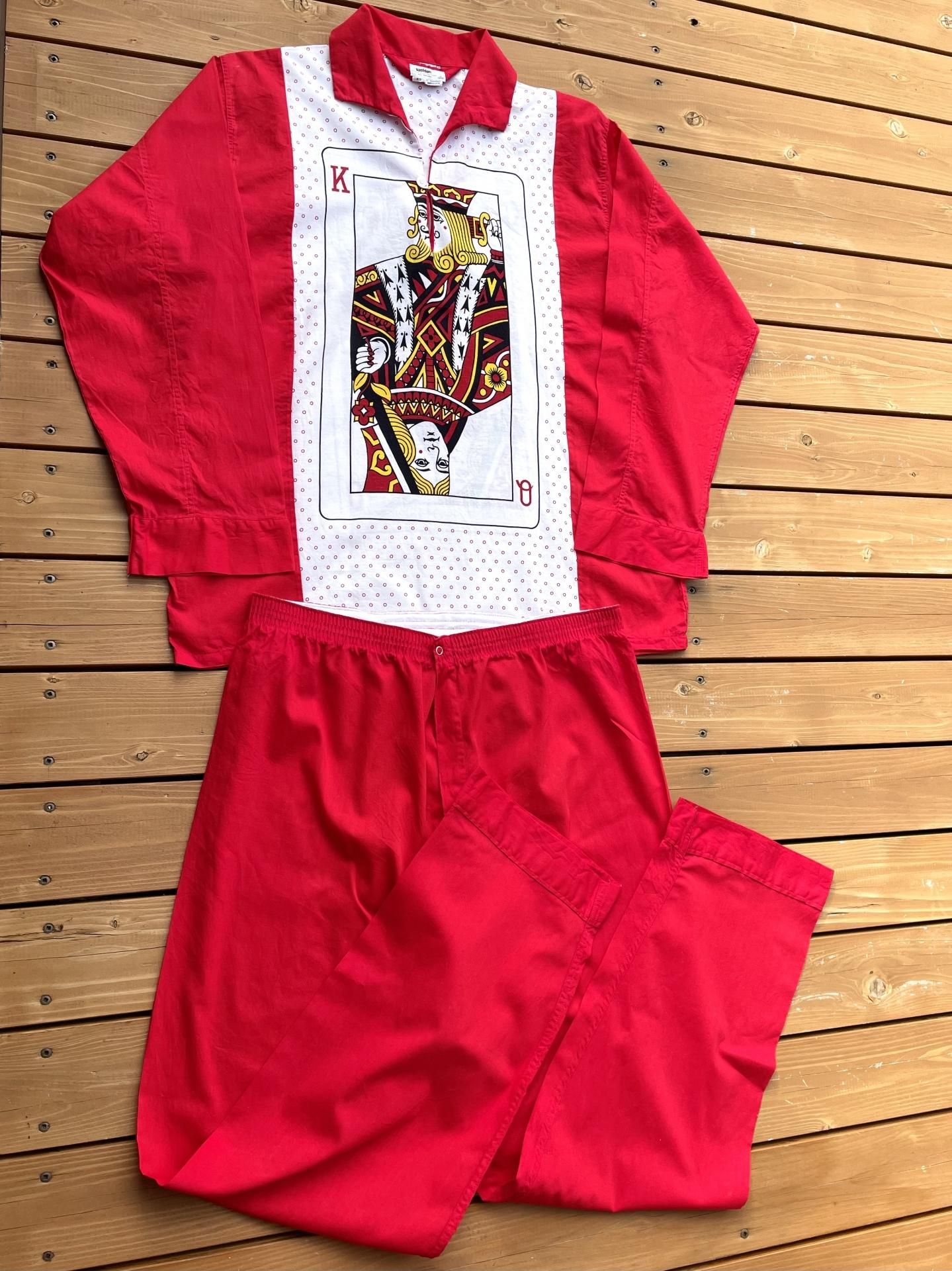 前後面にインパクト大のトランプ柄と赤無地の切り替え🤩