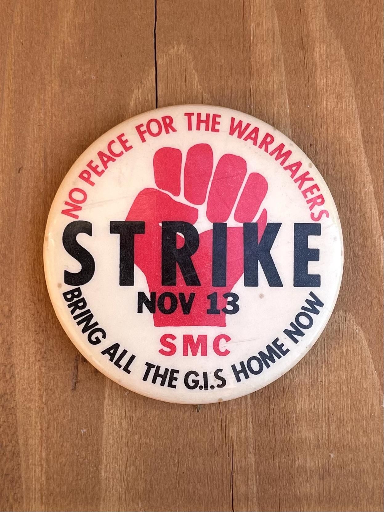 1969年 11月13日に行われたベトナム戦争に対するストライキのピンバッチかと✊