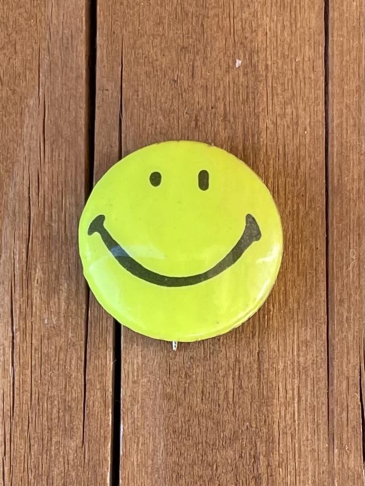 1970's "SMILEY FACE" PINBACK BUTTON VIVID YELLOW SMALL SIZE