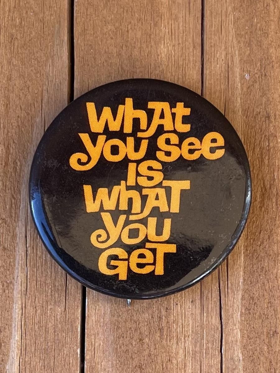 1972 "WhAt you see IS WhAT you GeT" PINBACK BUTTON