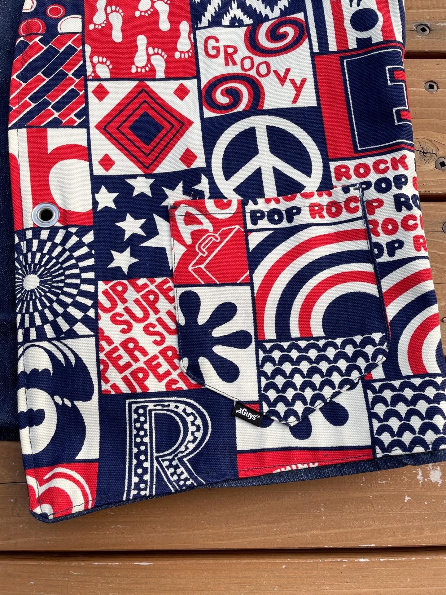総柄面にタグ付きのポケット付き。