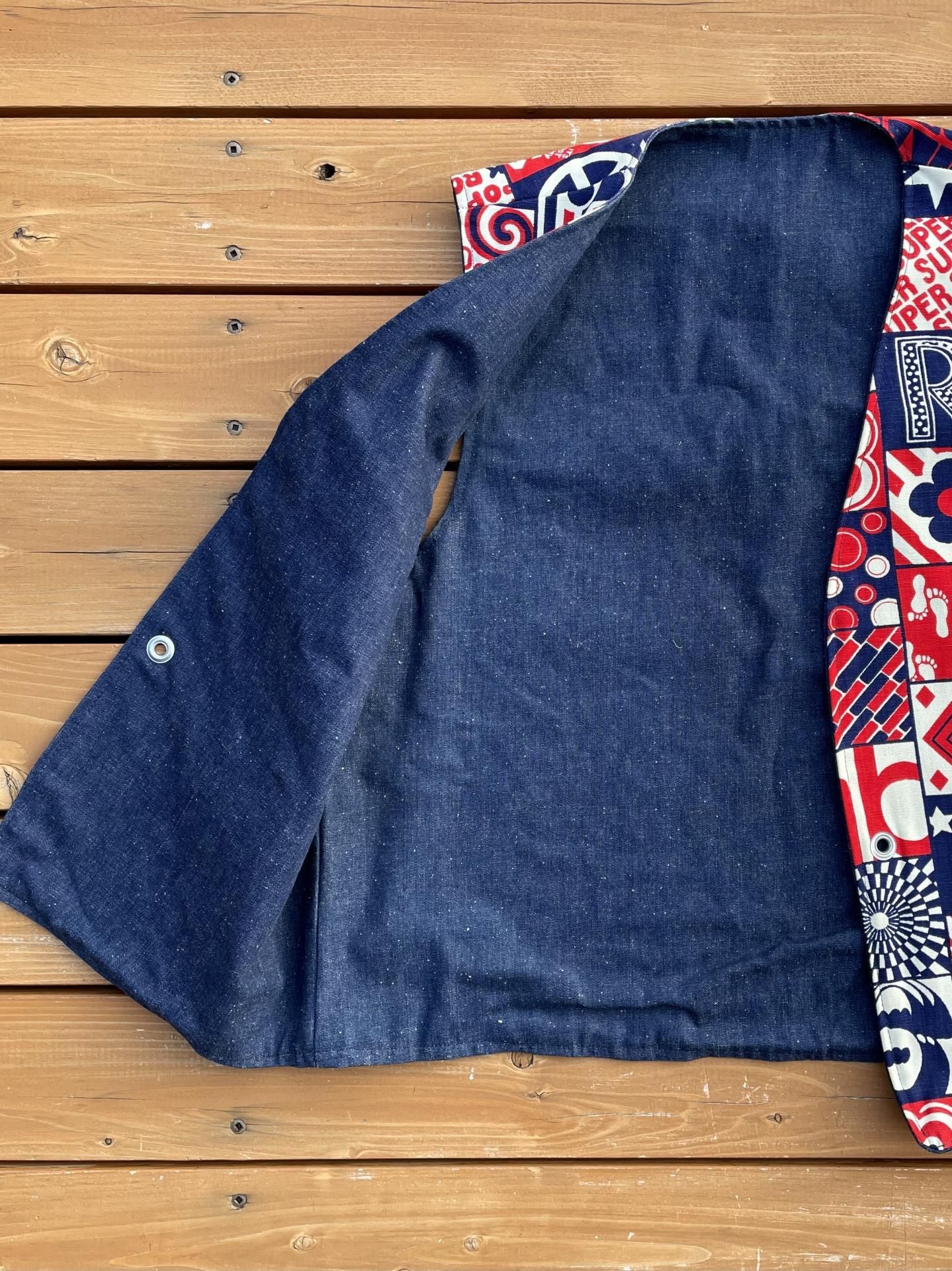 「肉厚のコットン総柄生地」✖️「いい色落ちしそうなインディゴデニム」のリバーシブルベスト。