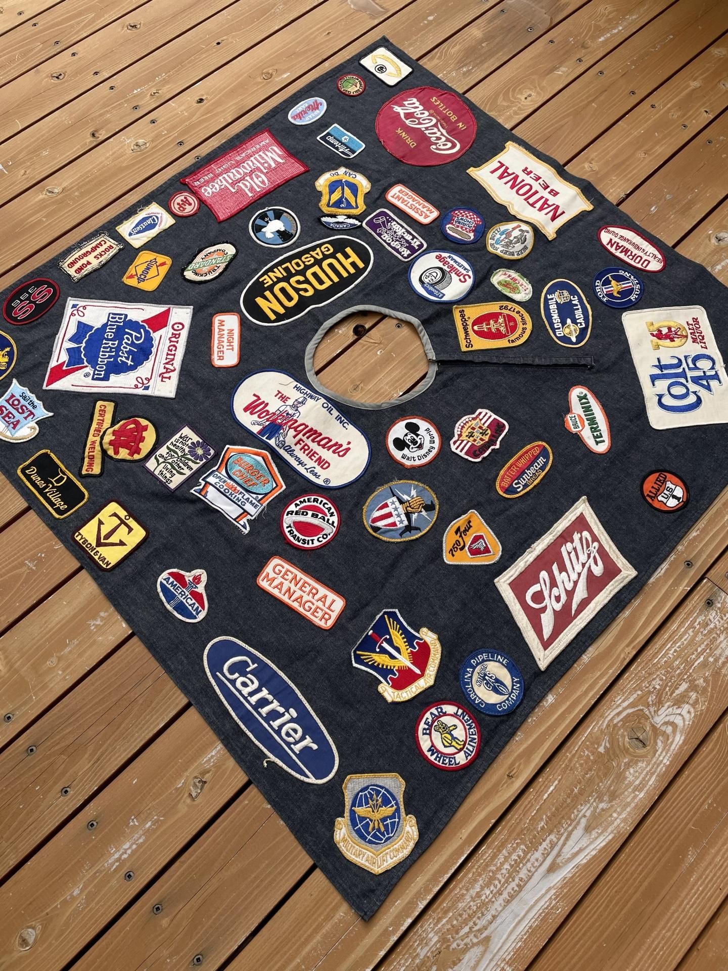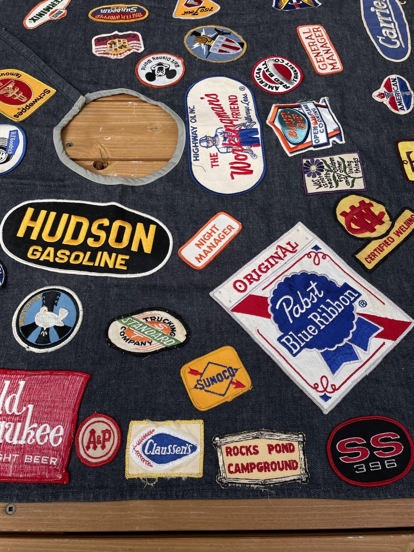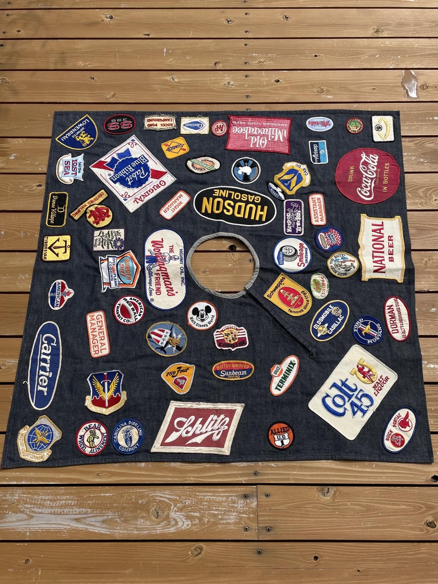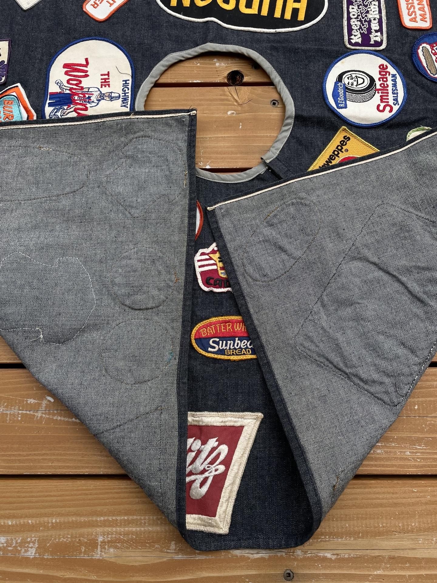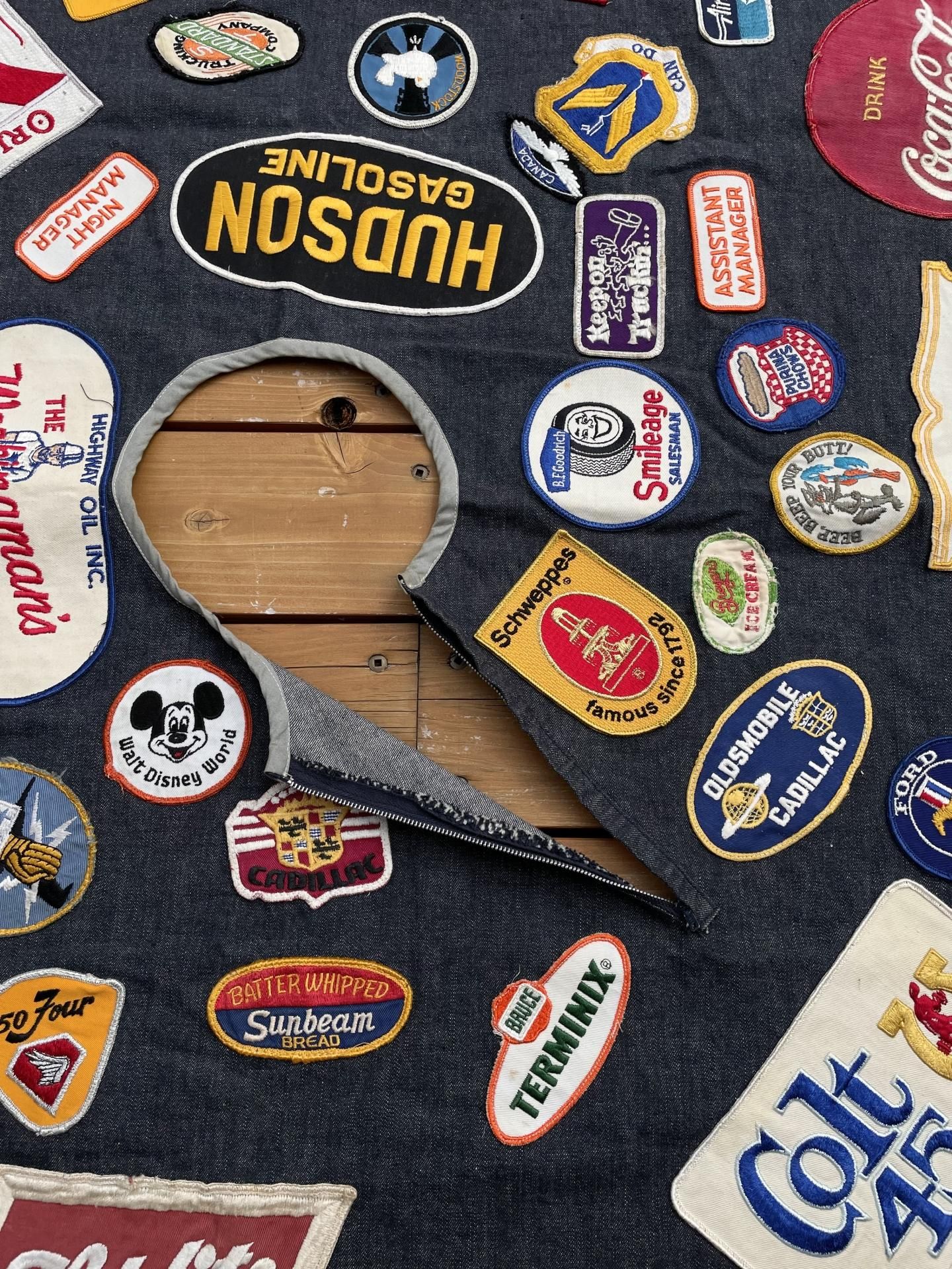 56個のビンテージワッペンが縫い付けられています。