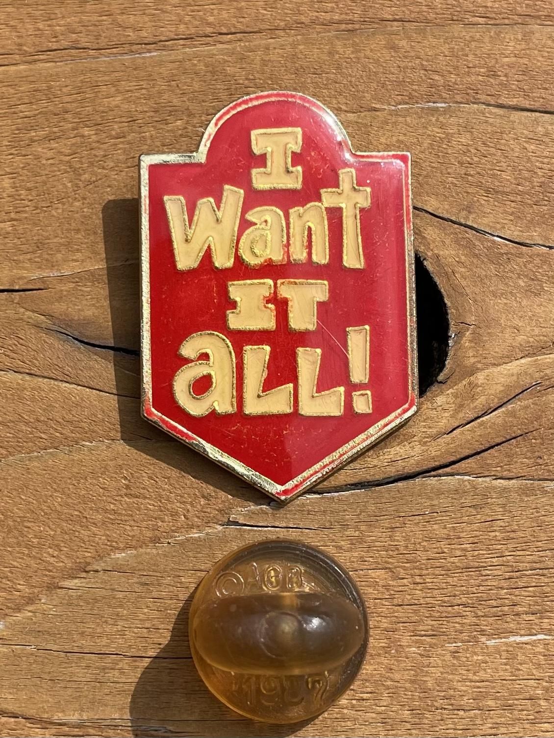 1988 "I Want IT aLL!" PINS by "AGB"