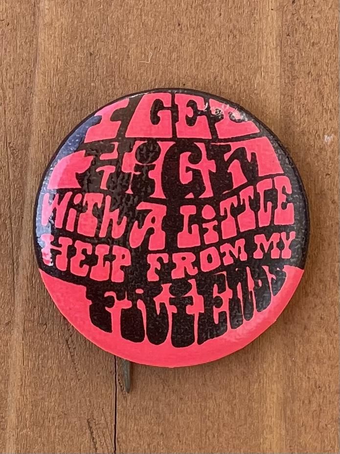 1970's "I GET HiGH WiTH A LiTTLE HELP FROM MY FRiENDS" PINBACK BUTTON