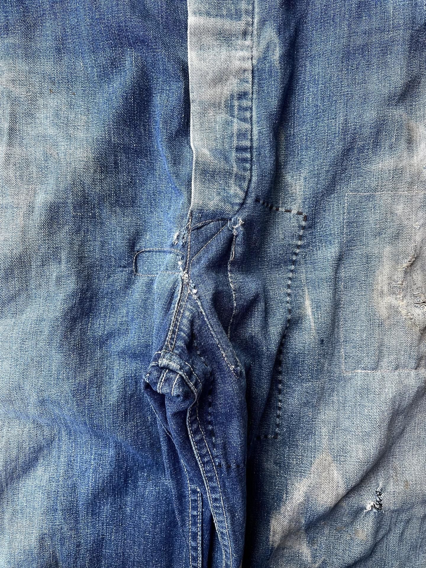 フロントボタンフライの一番下のデニム生地も緩かったの補強しております🪡