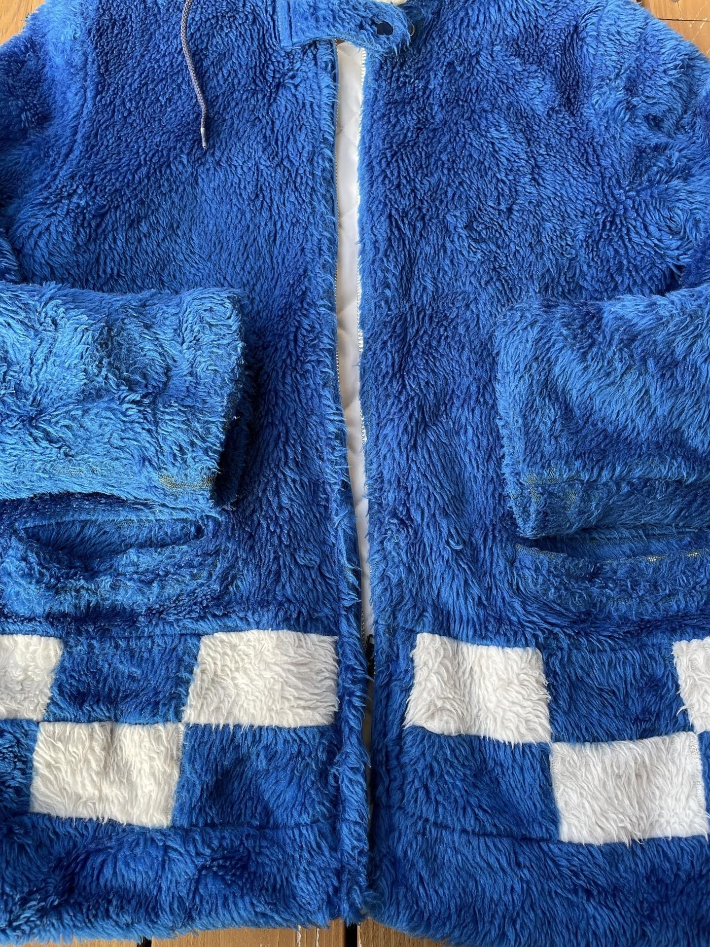 ふかふかのフェイクファーに、中綿入りのキルティングが張ってあります。