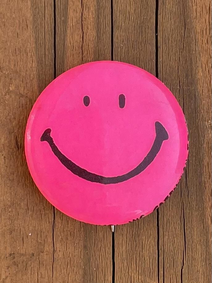 1970's "SMILEY FACE" PINBACK BUTTON SMALL PINK
