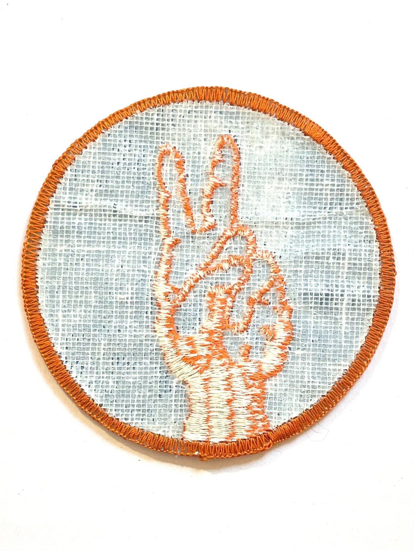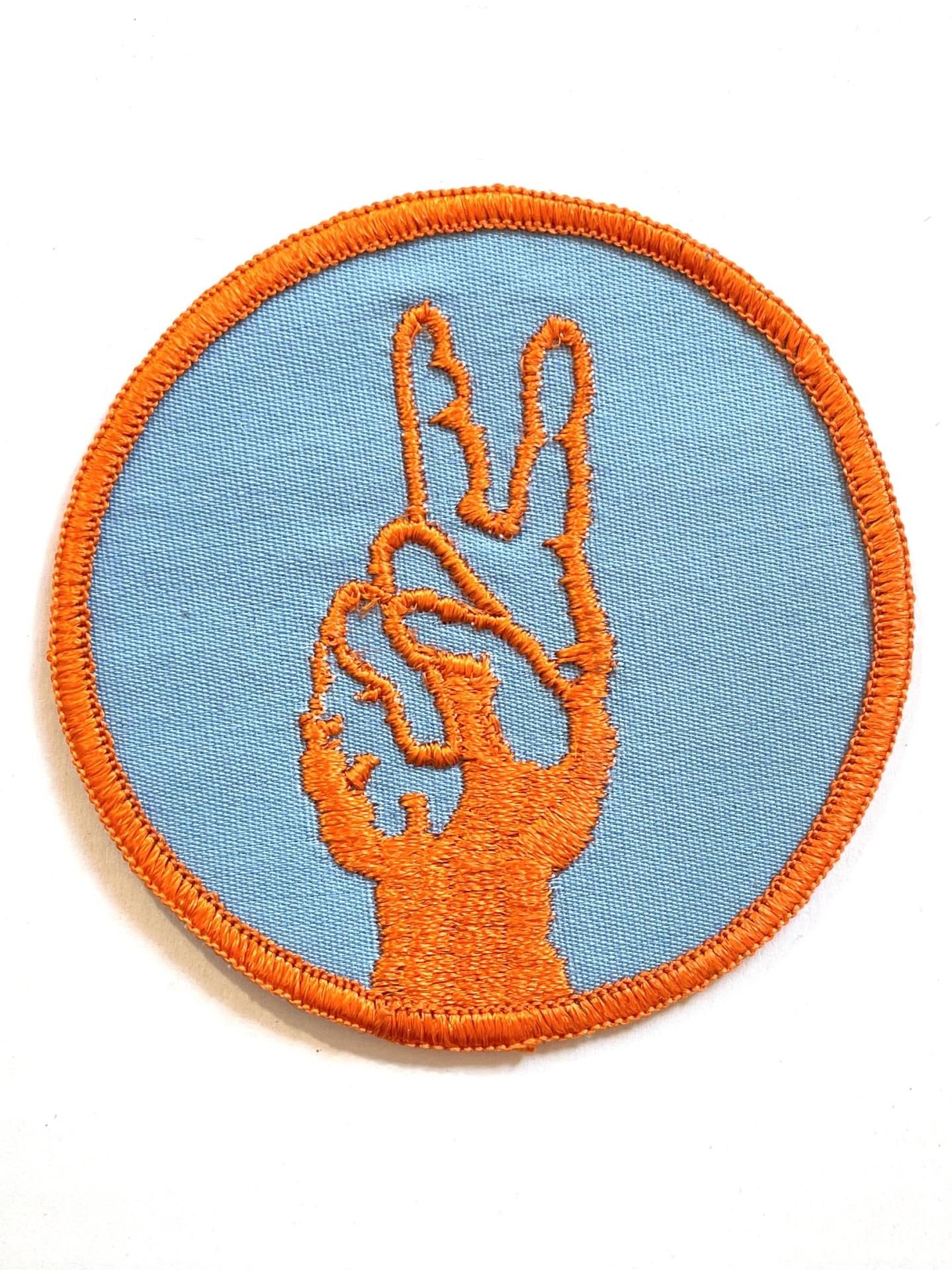 1970's "PEACE FINGERS" LIGHTBLUE × ORANGE PATCH DEADSTOCK