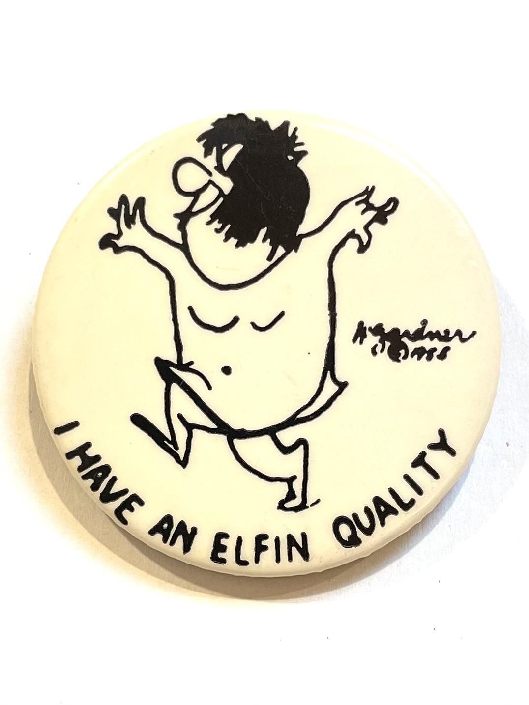 1955 "I HAVE AN ELFIN QUALITY" PINBACK BUTTON ay "H.garder"