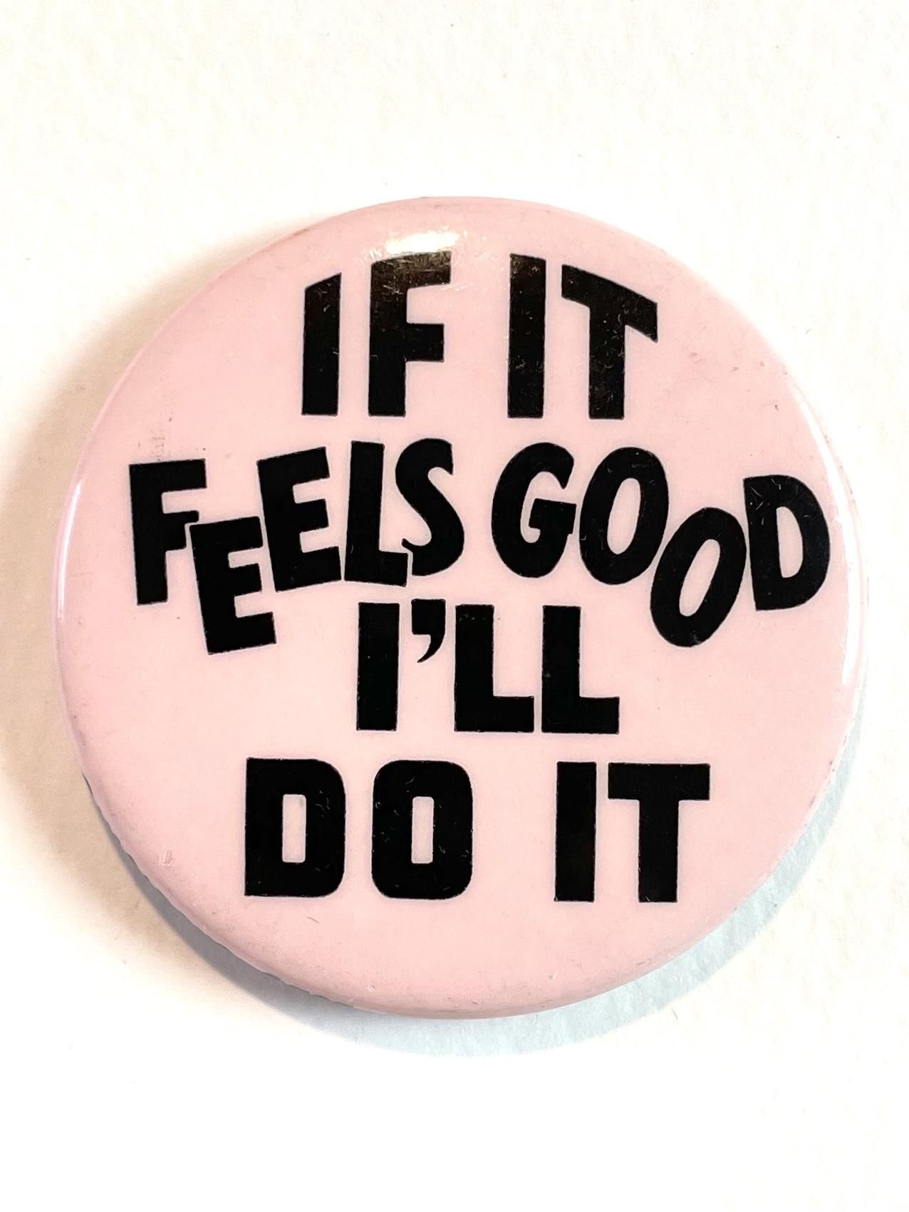 1970's "IF IT FEELS GOOD, I'LL DO IT" PINBACK BUTTON DEADSTOCK