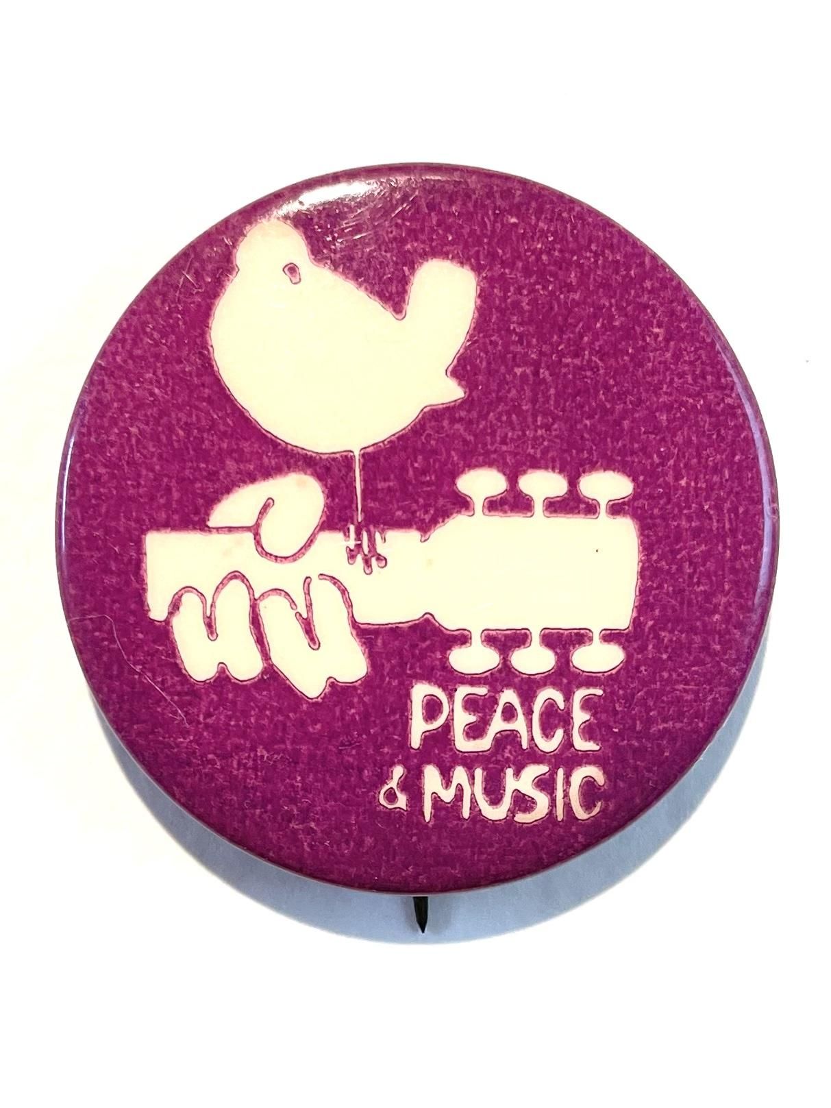 1970's "WOODSTOCK*PEACE & MUSIC" PINBACK BUTTON