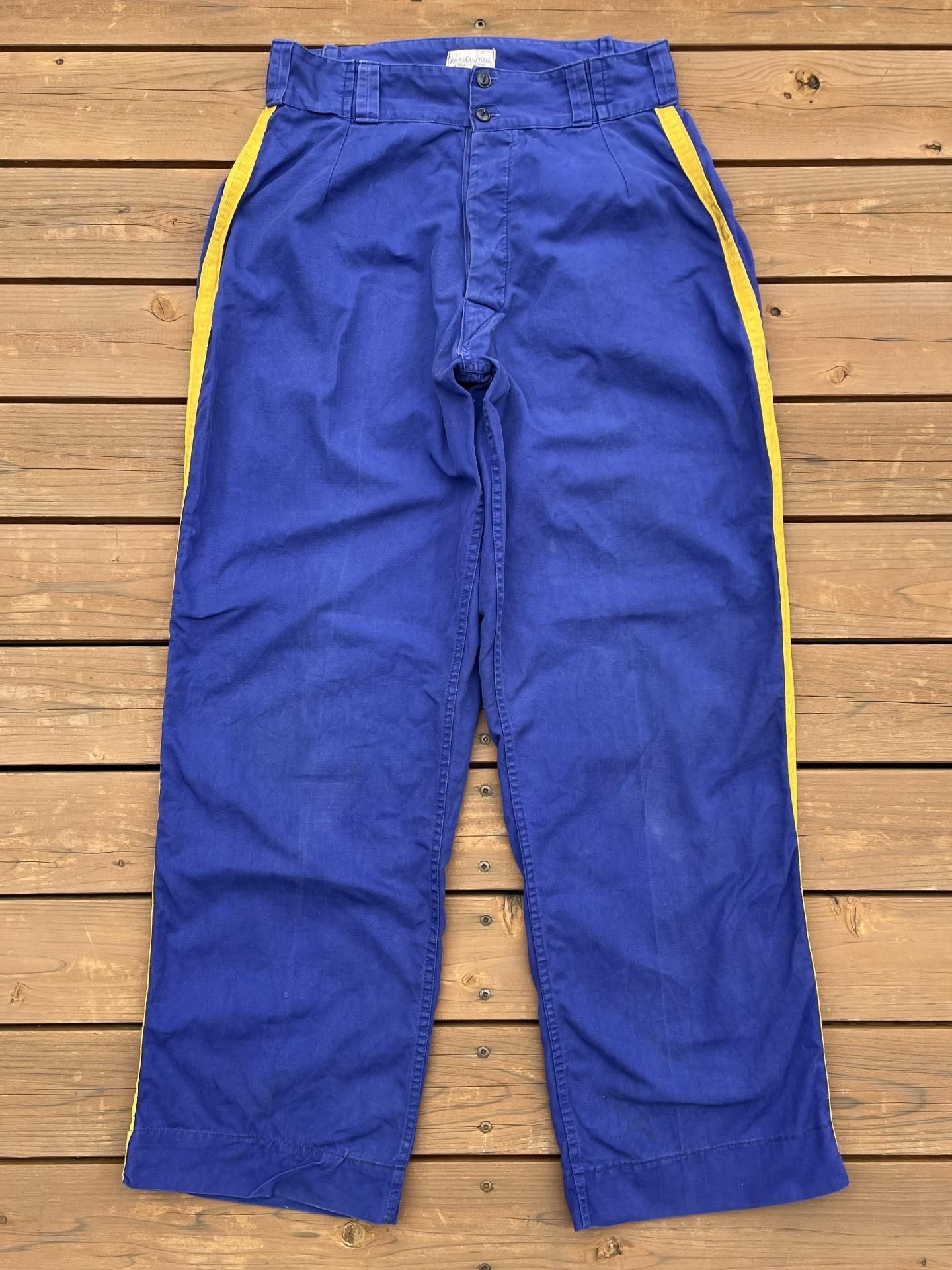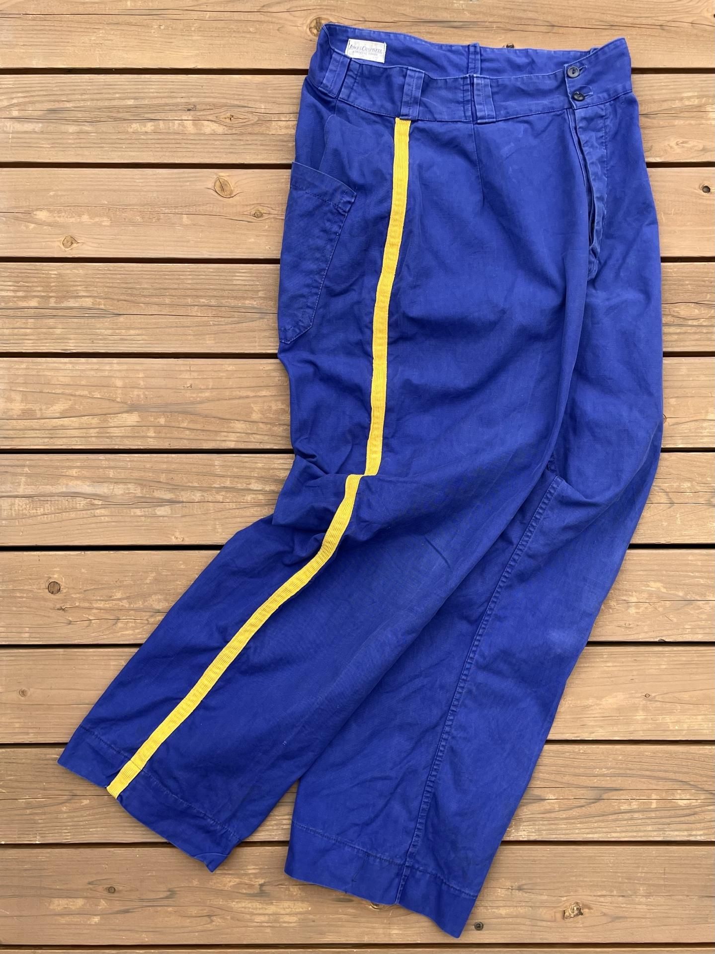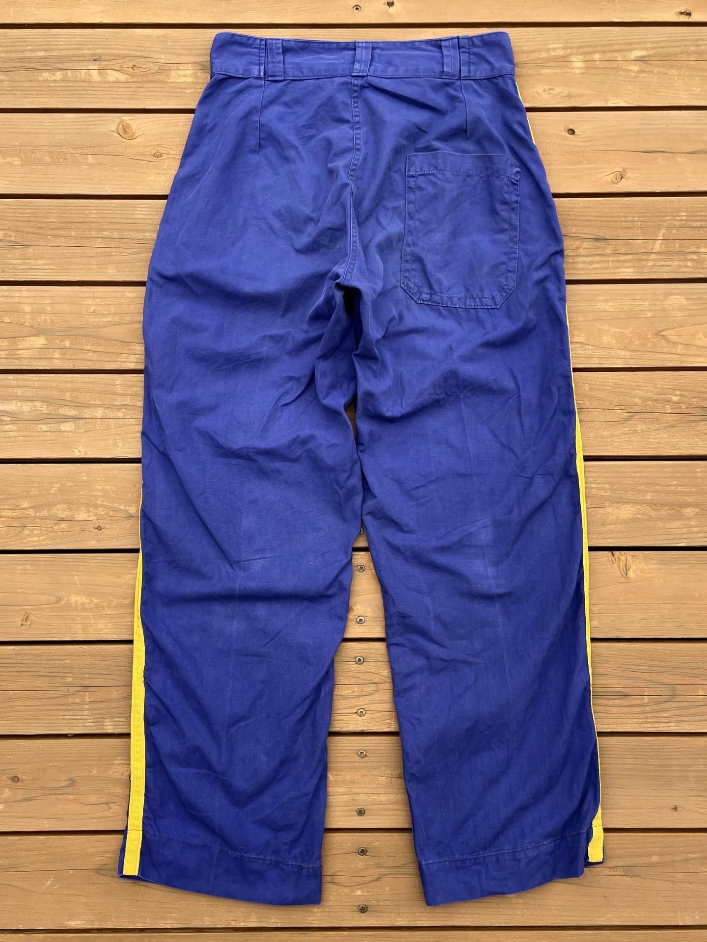 良い雰囲気に経年変化した紺地に、鮮やかなイエローのライン入り。