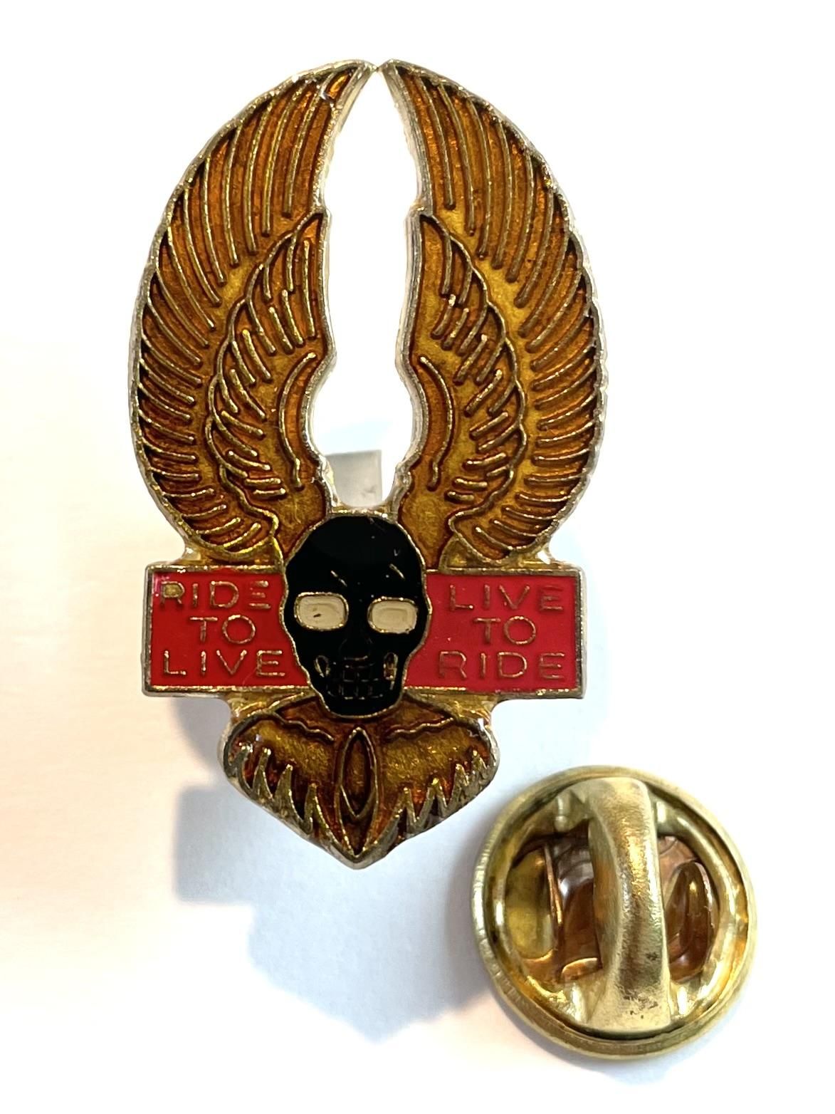 1980's "RIDE TO LIVE / LIVE TO RIDE" BLK SKULL PINS DEADSTOCK