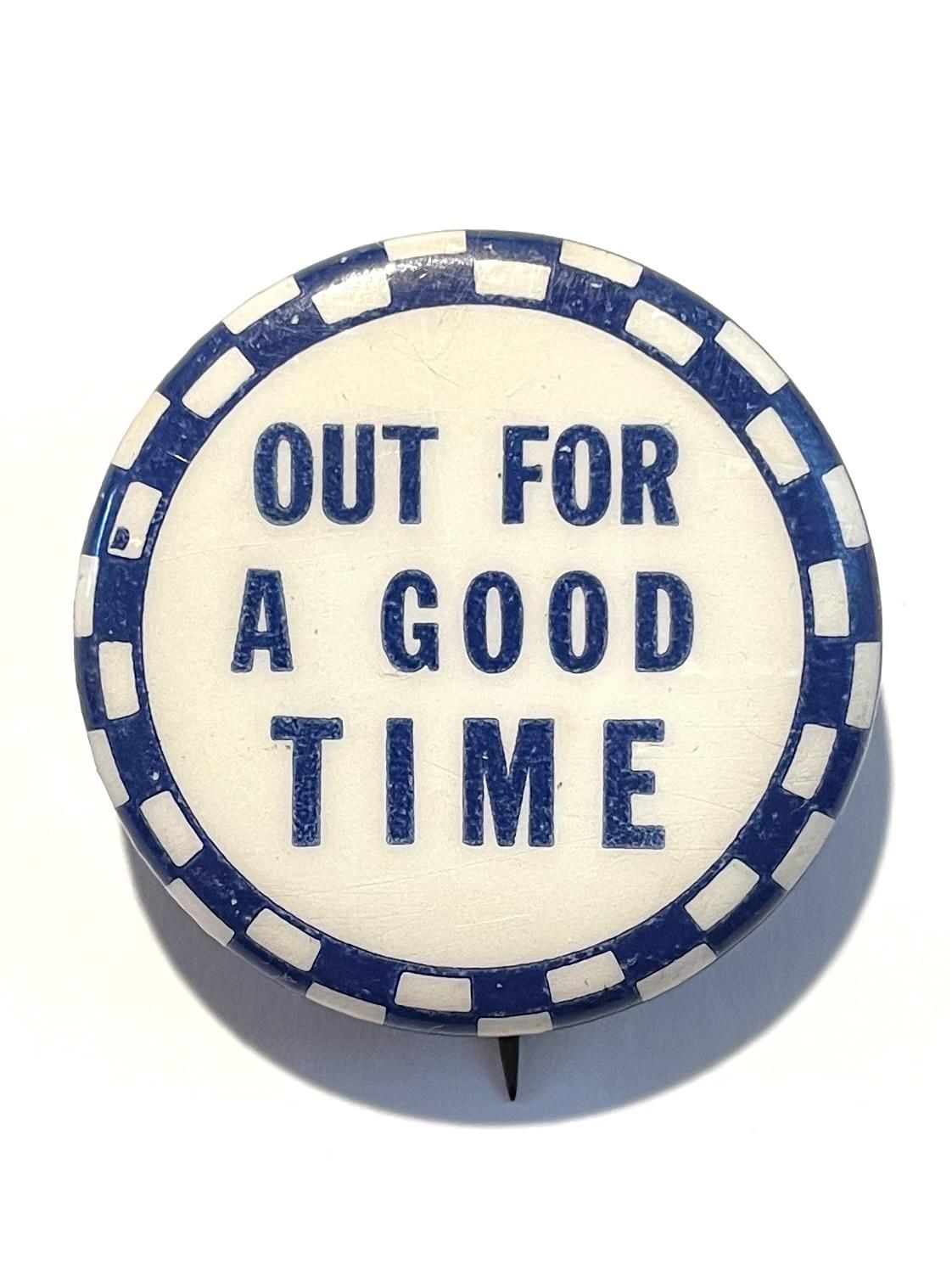 〜1950's "OUT FOR A GOOD TIME" checkered PINBACK BUTTON