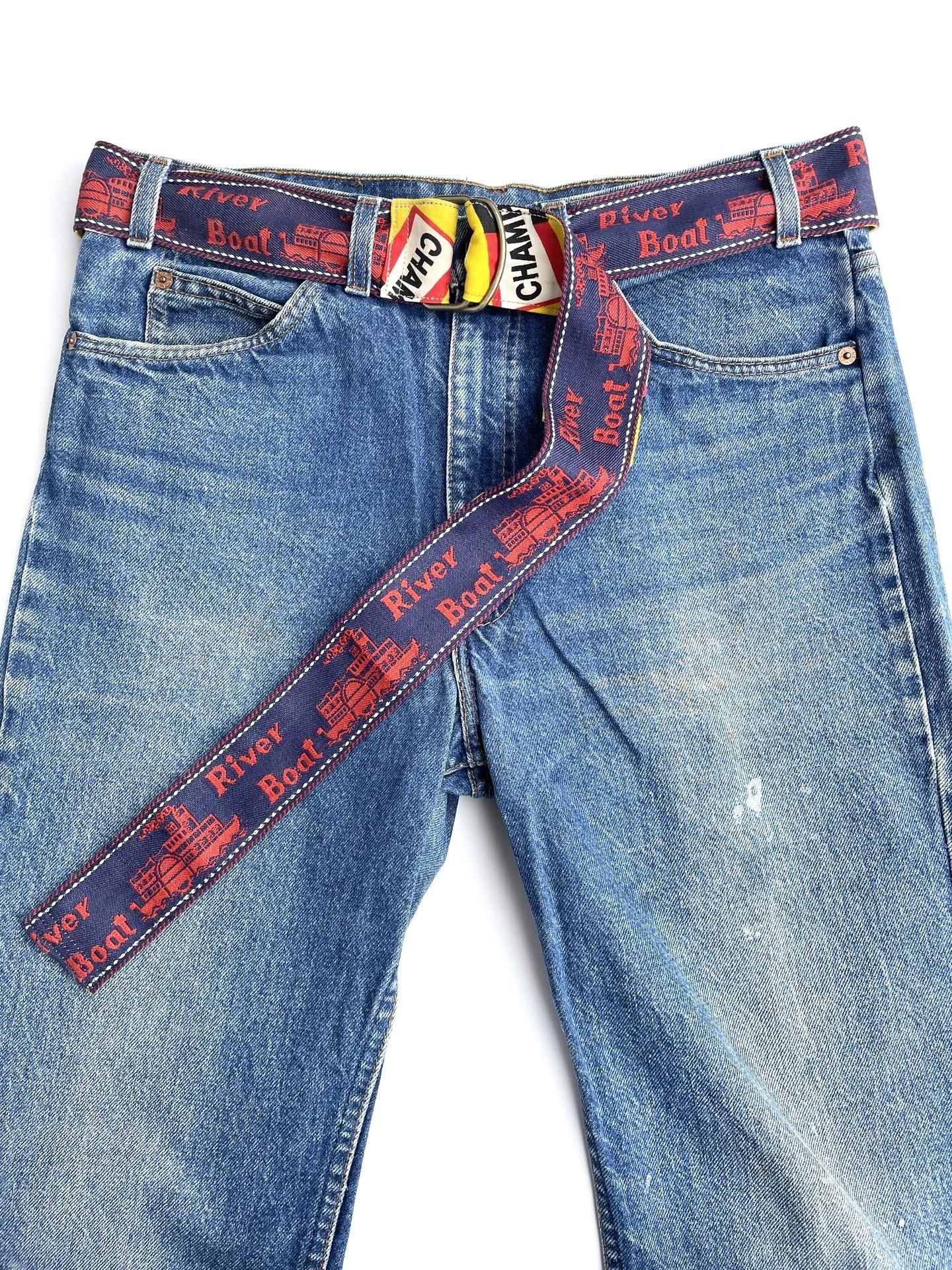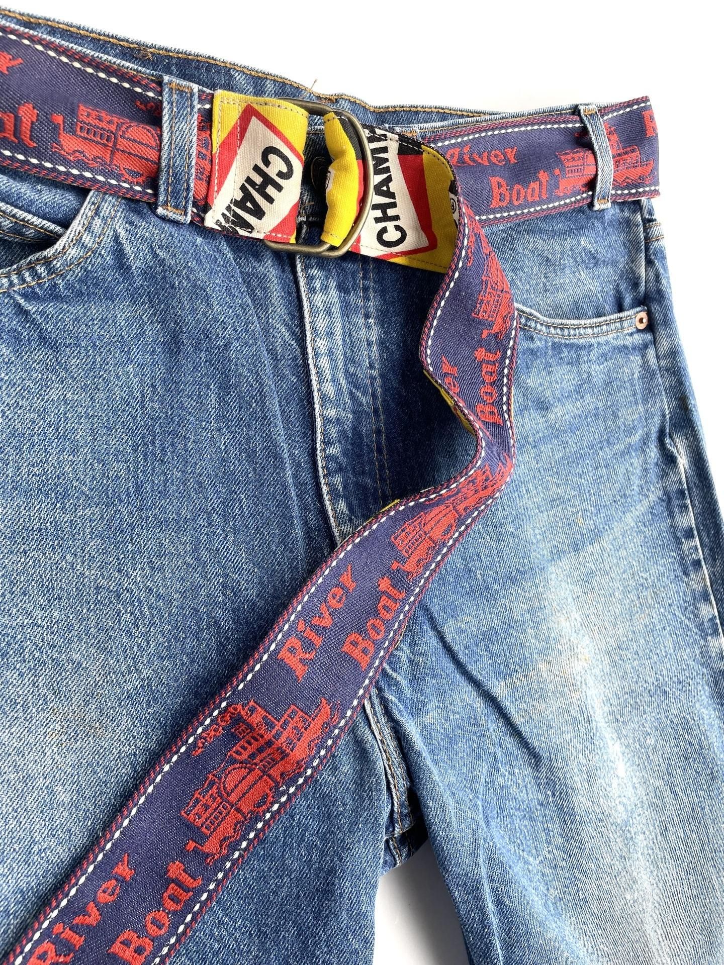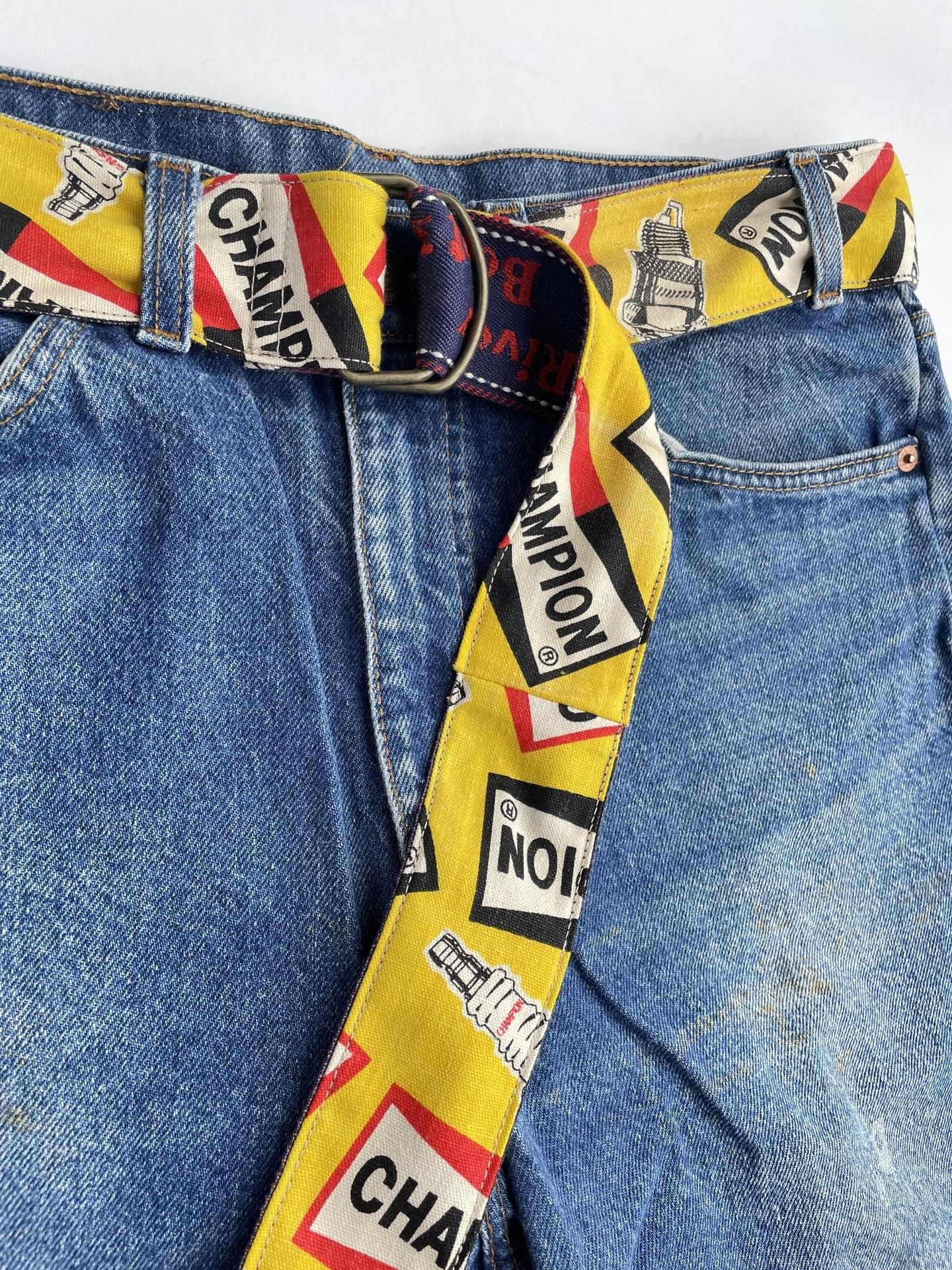 1970年代の『CHAMPION SPARK PLUGS』のファブリックと、同年代のデッドストックのデニムトリムを使って製作したリメイクベルトです☝️