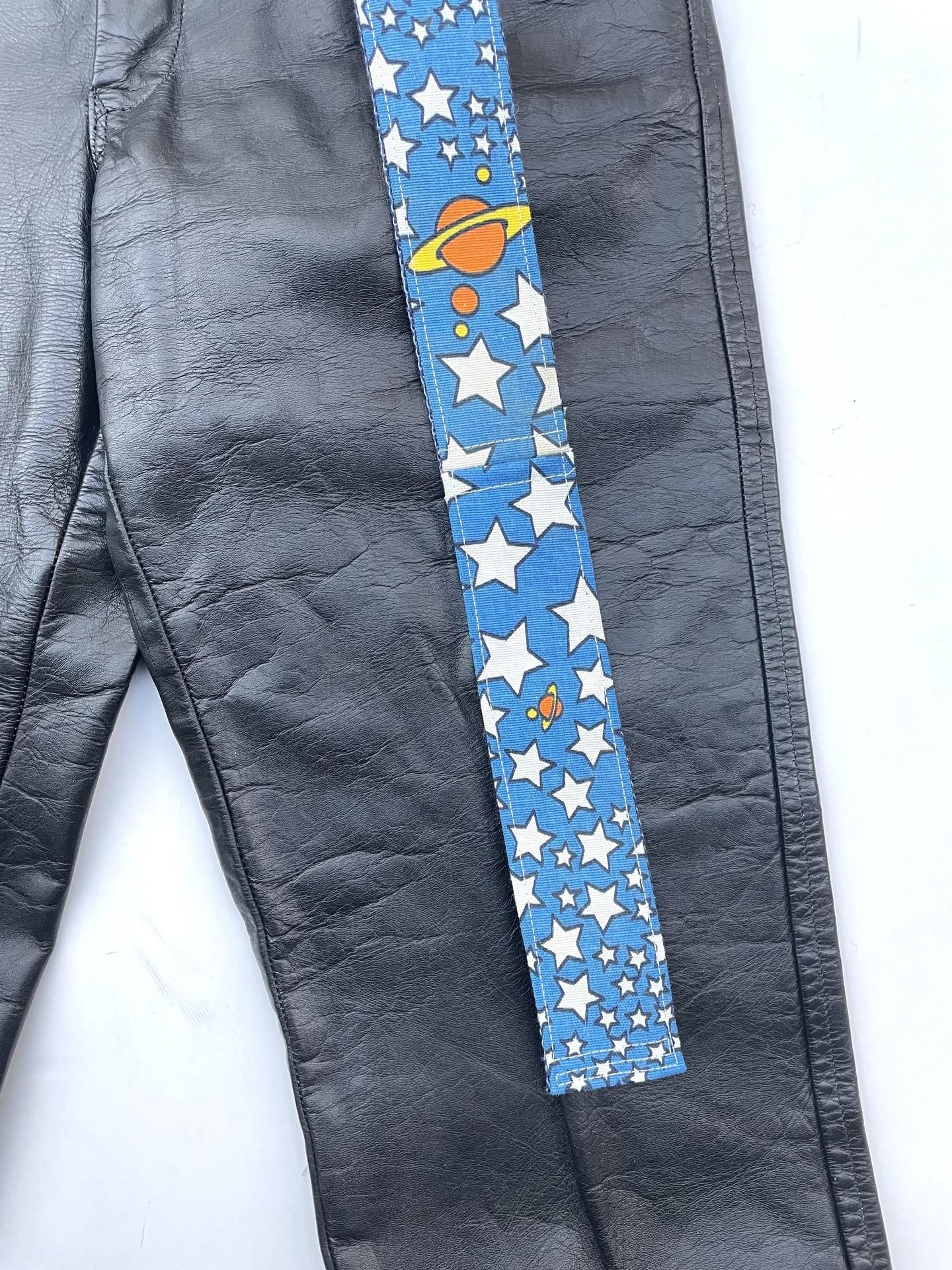 1970年代の『peter max / ピーターマックス』のファブリックと、同年代のデッドストックのトリムを使って製作したリメイクベルトです☝️