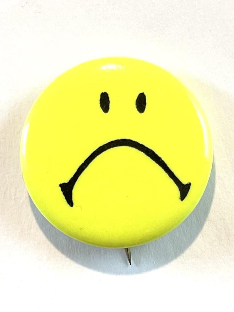 1970's "ANGRY FACE" PINBACK BUTTON NEON-YELLOW