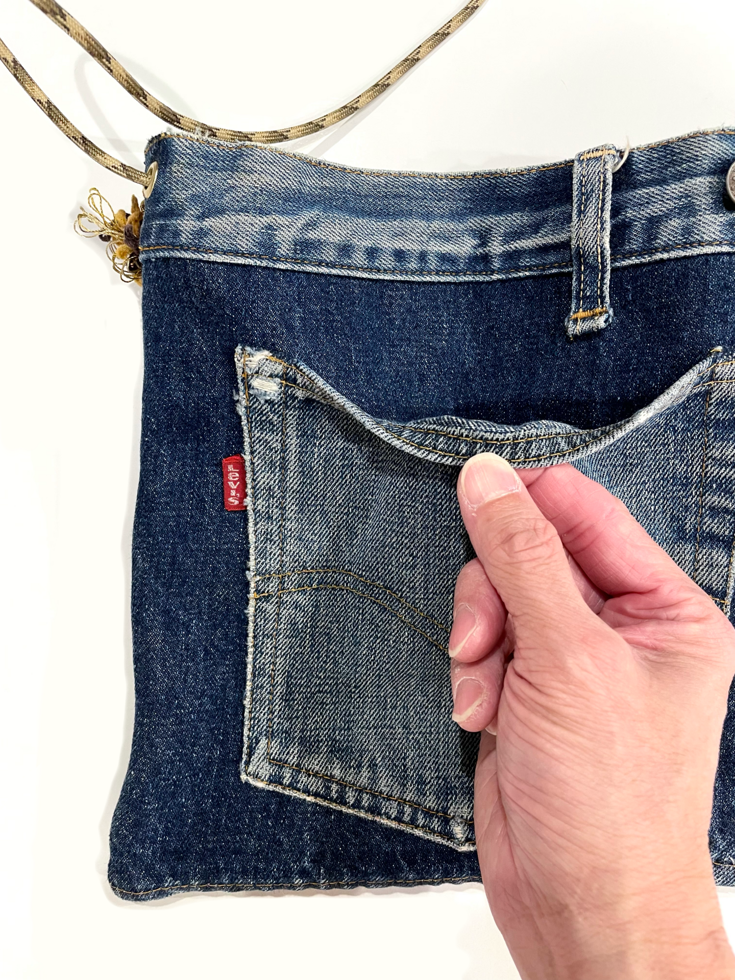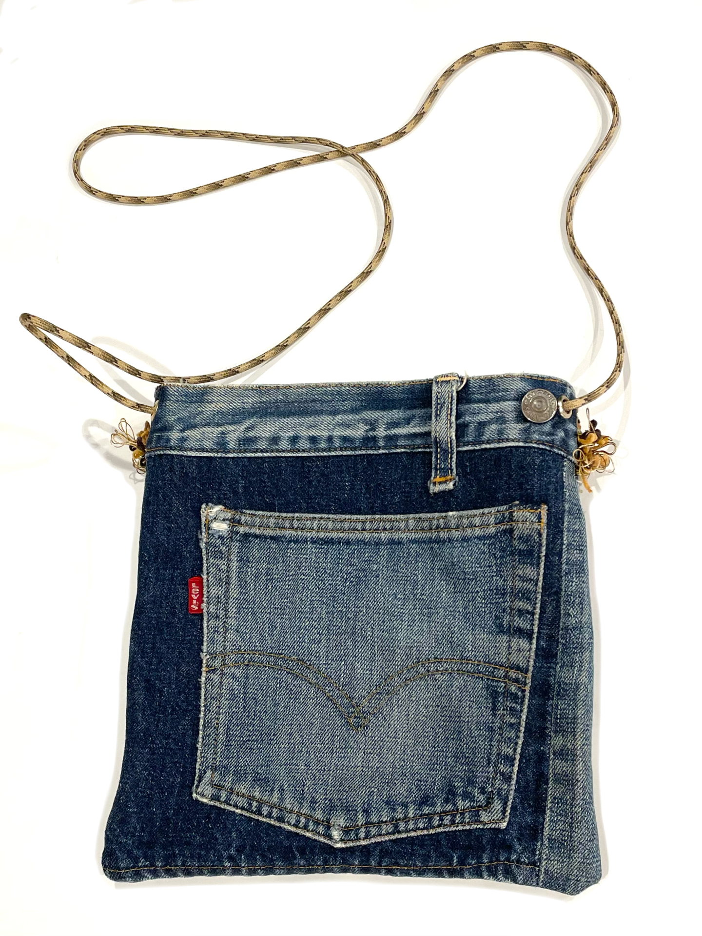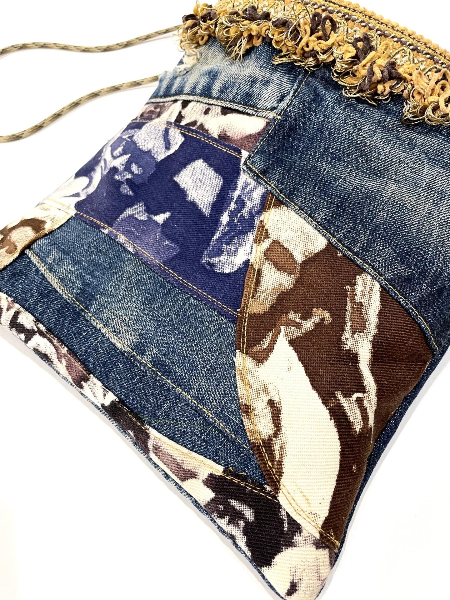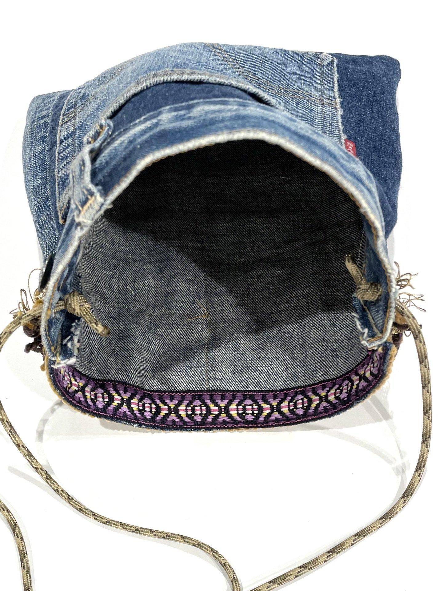 リーバイスの『BIG E・66シングルステッチ』と70年代の『ウッドストック』ファブリックを使ったリメイクのショルダーバッグです☝️