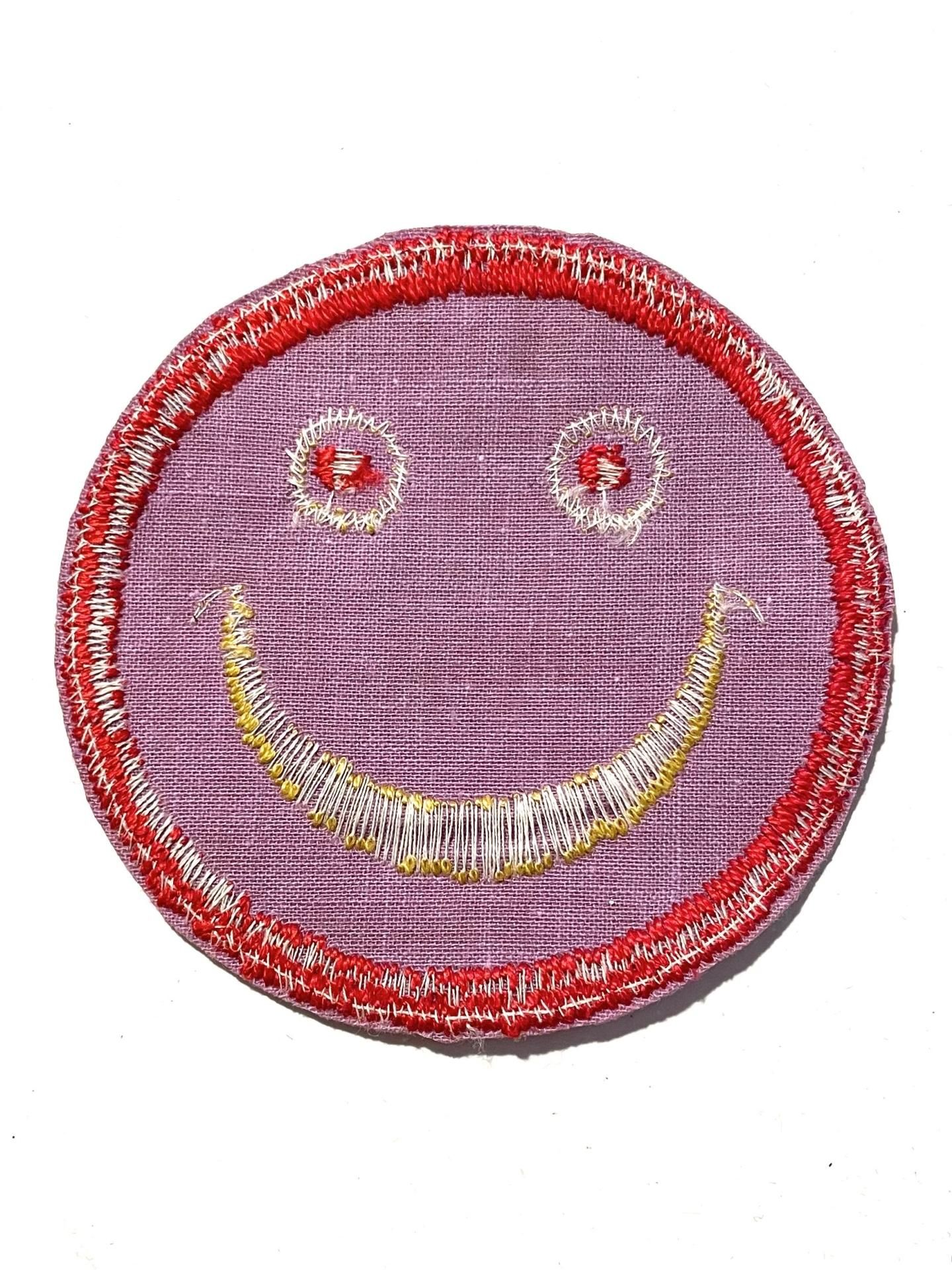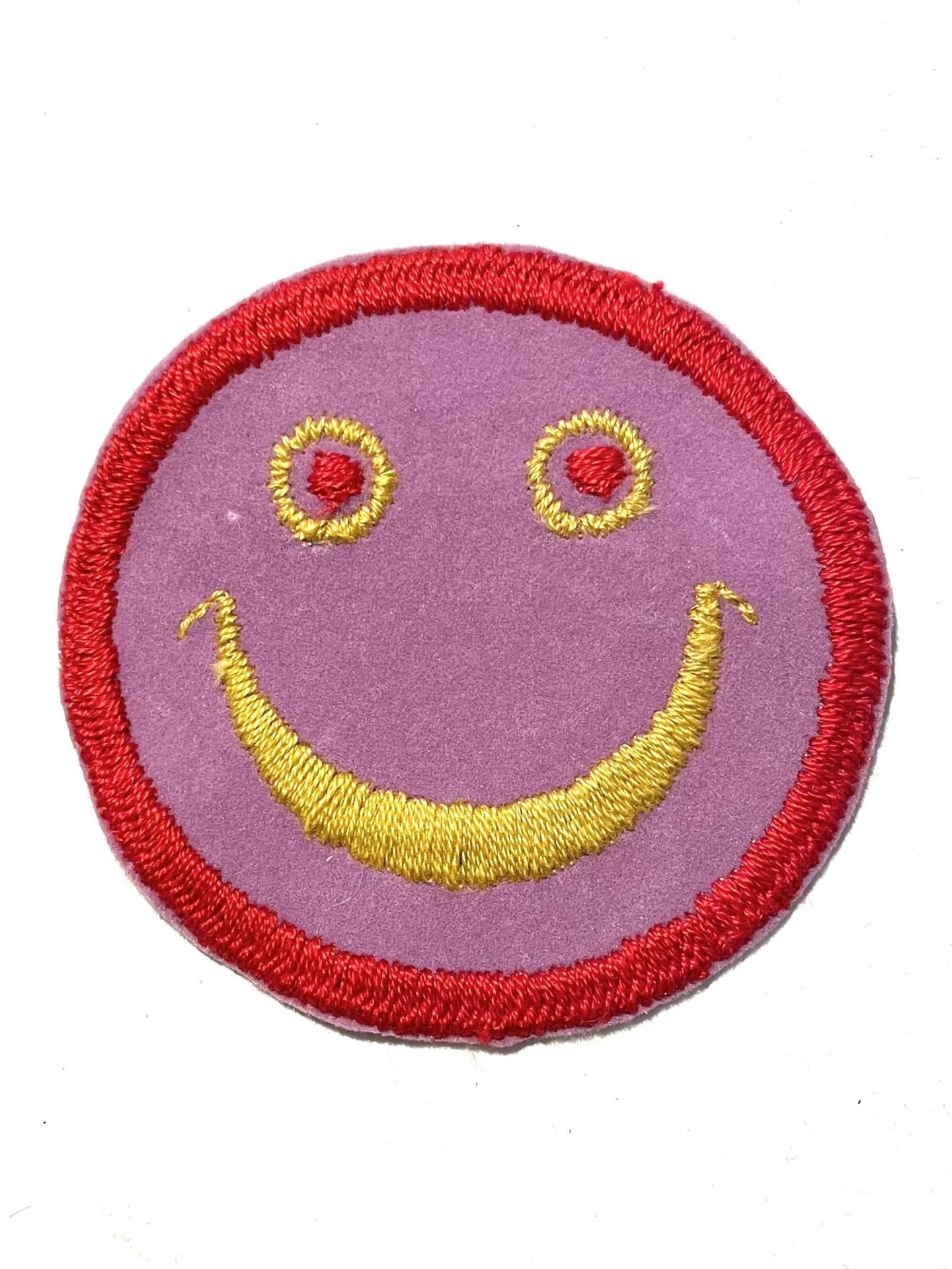 ベロア素材に2色の刺繍が施されたスマイリー。