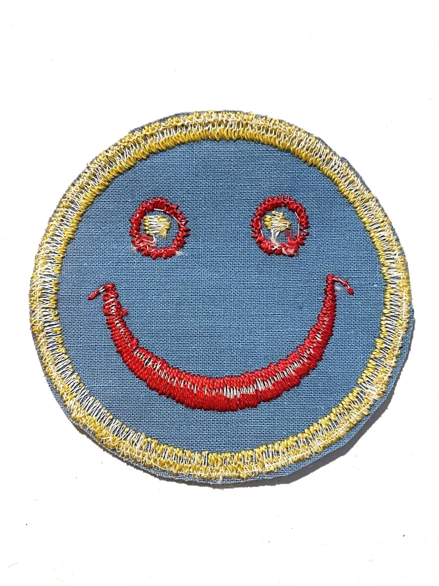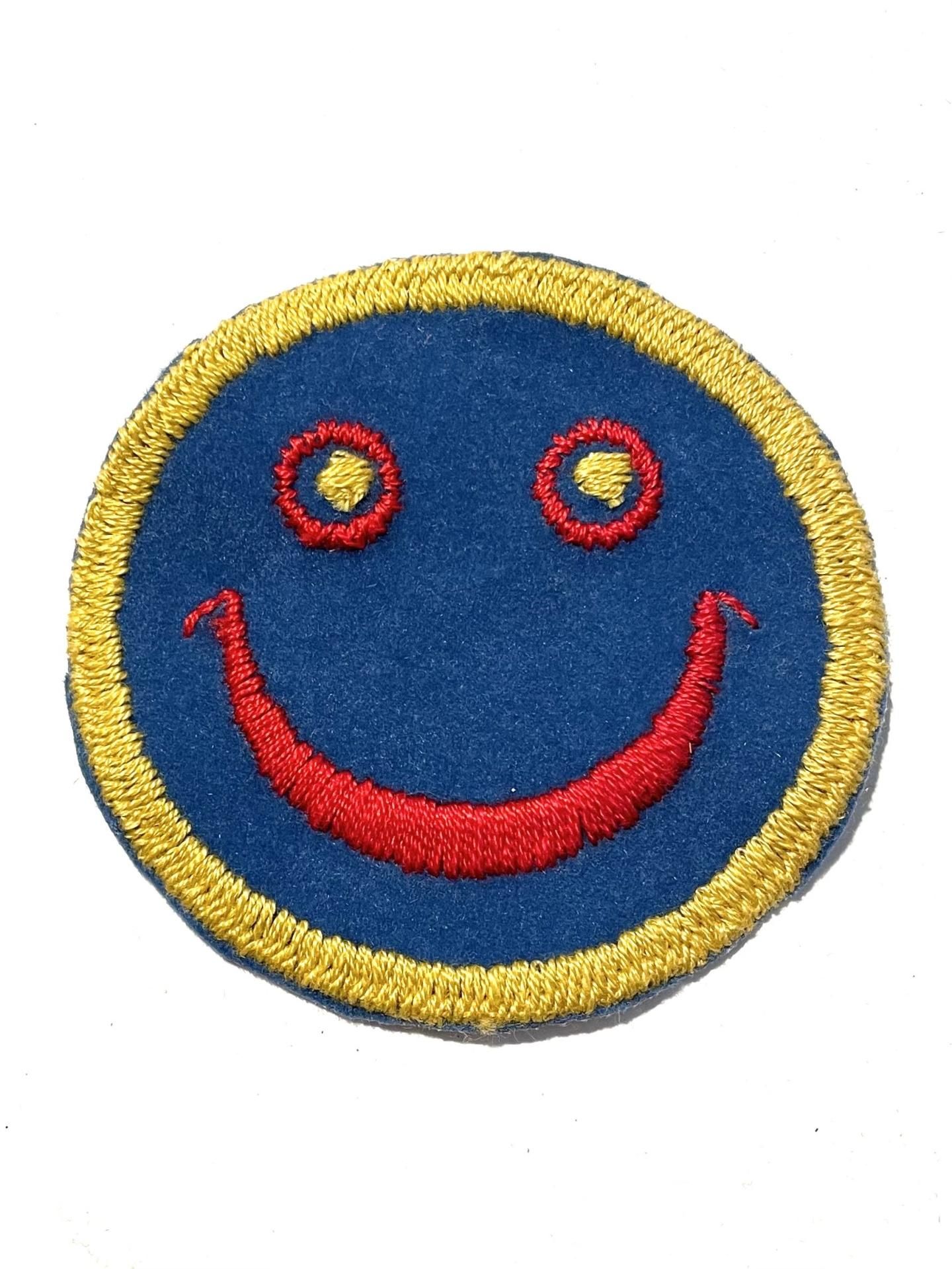 1970's "SMILEY FACE" VELVET PATCH BLUE DEADSTOCK